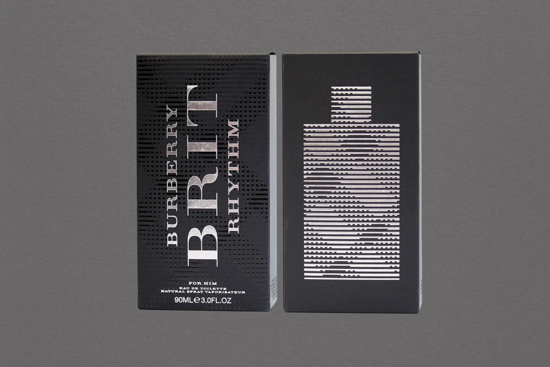 This was a project developing artwork for Burberry’s beauty products and in-store packaging. My main focus was how the structure, textures and finish of the signature Burberry check could be developed and simplified as a piece of binary artwork for use on the new range of Brit Rhythm fragrance packaging.