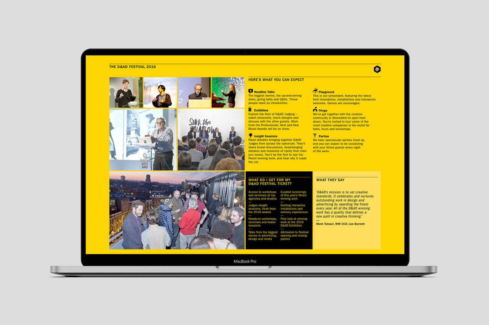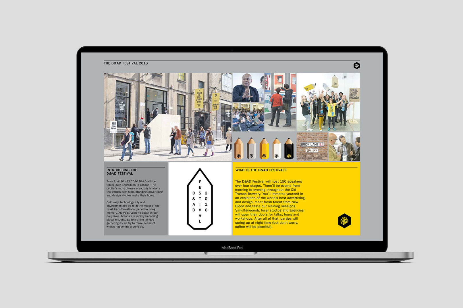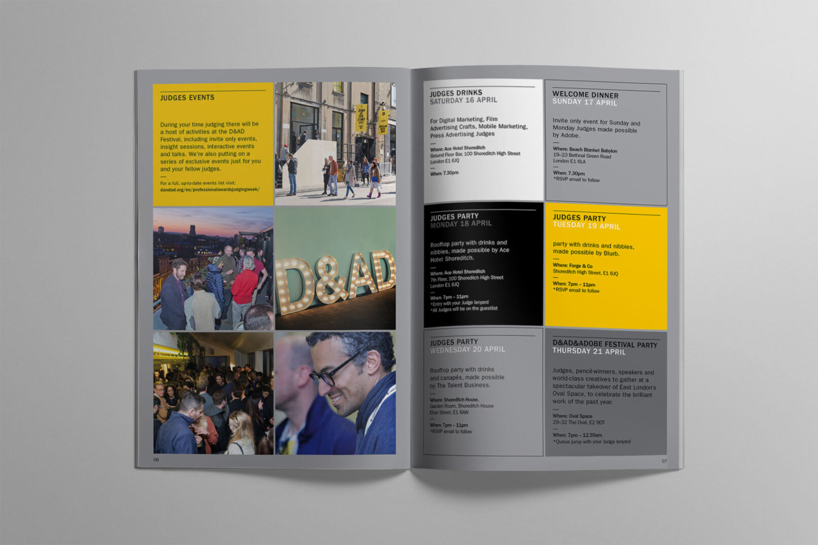 A series of generic branding pieces to support D&AD’s diverse activities across all departments. There wasn’t a consistent design approach in place, so I introduced a modular grid system that would be flexible enough to accommodate campaign identities and imagery, illustration and typography from various sources.