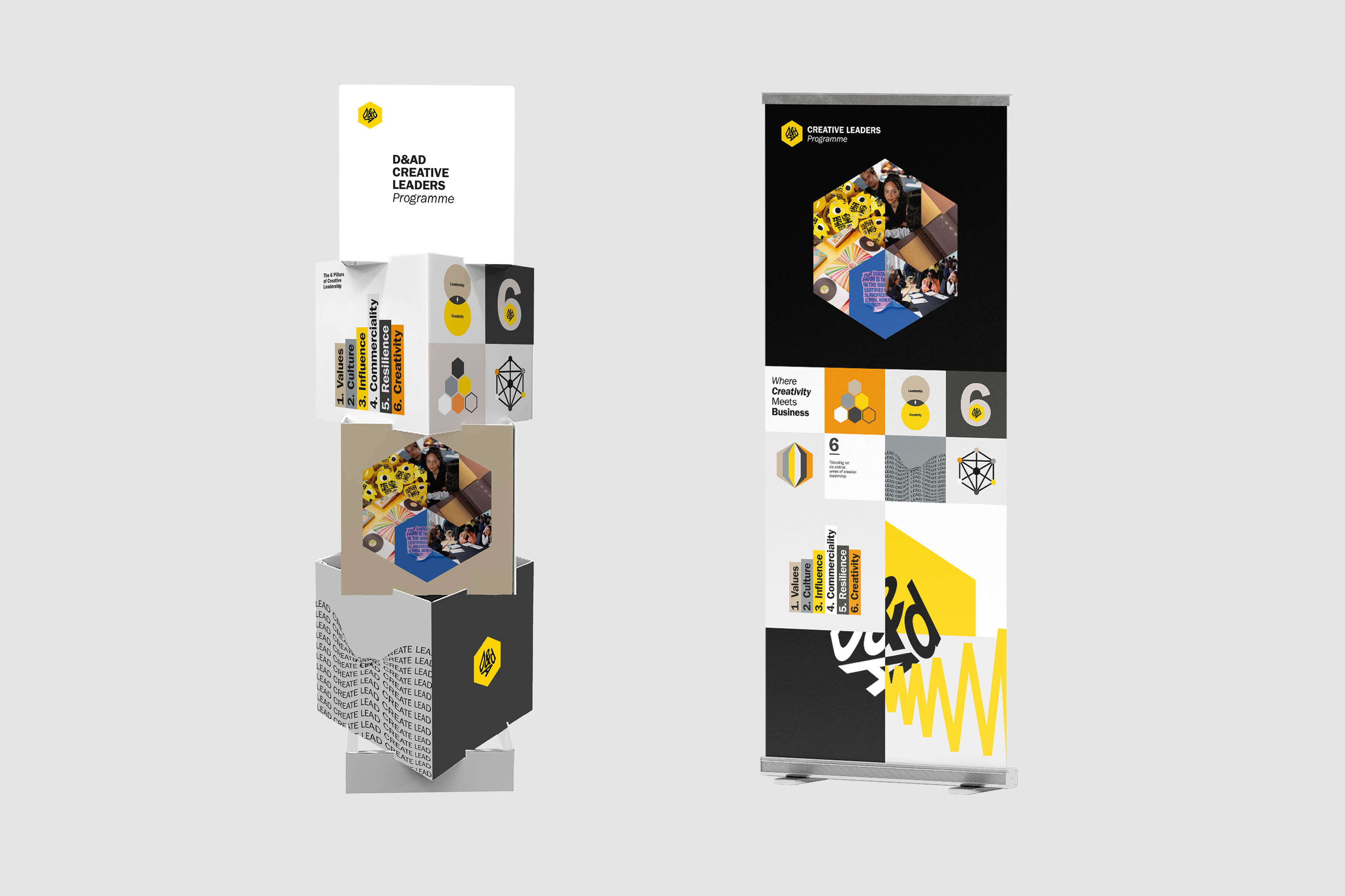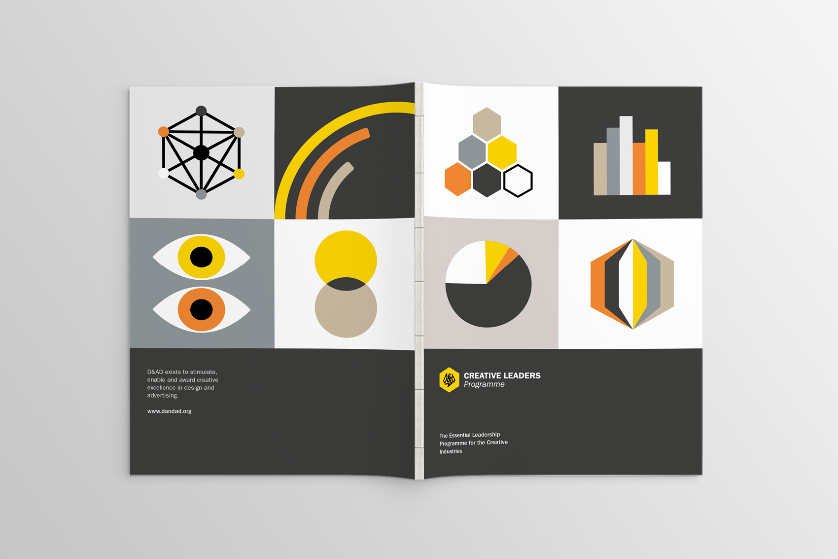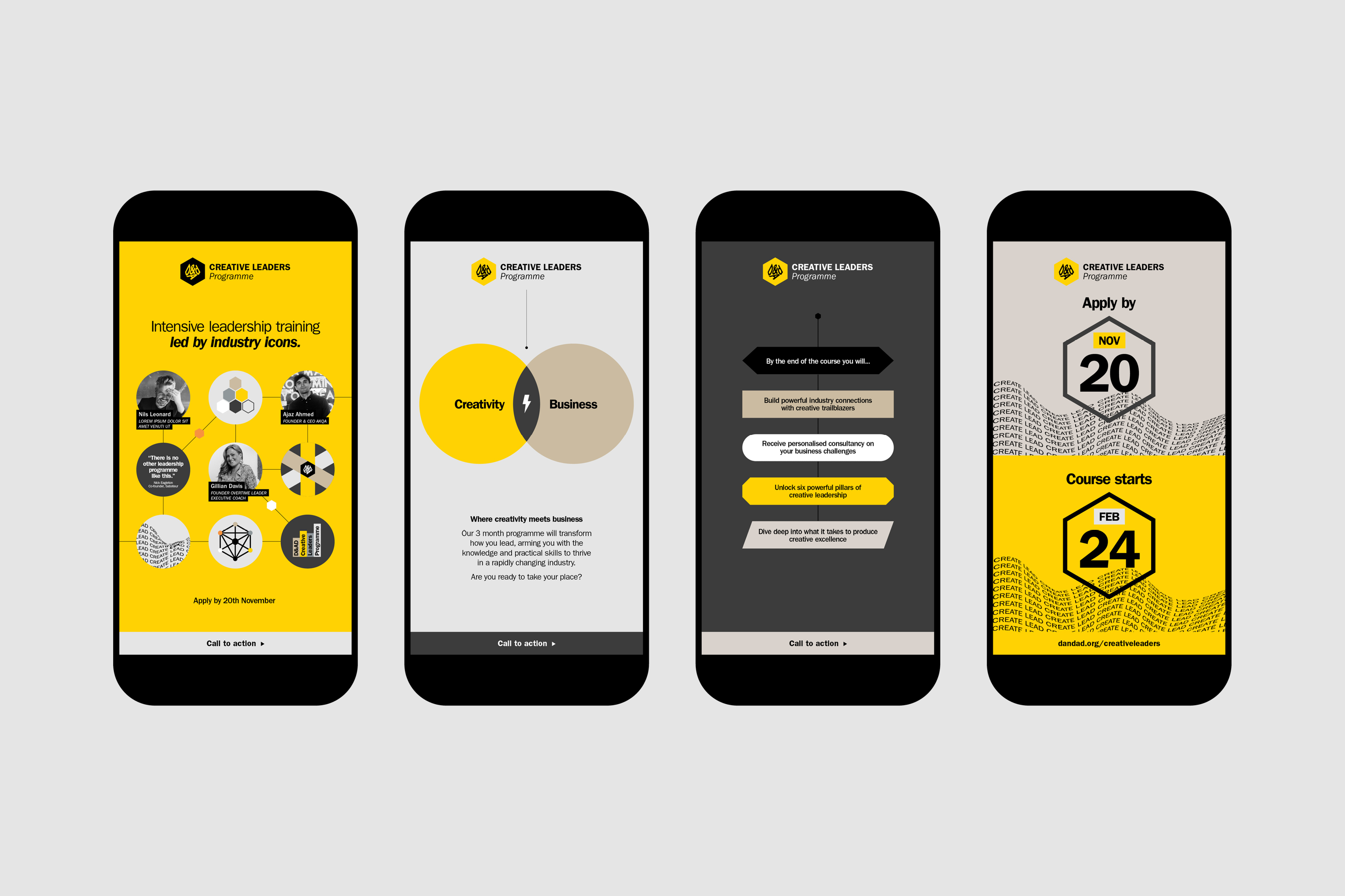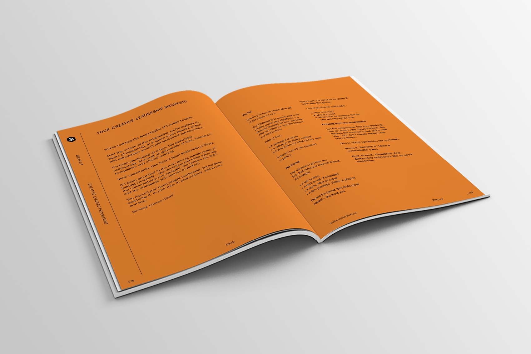A visual identity and project rollout for the Creative Leaders Programme, D&AD’s flagship course for established creative directors looking to refine their leadership skills and find a balance between creative freedom and business responsibilities.