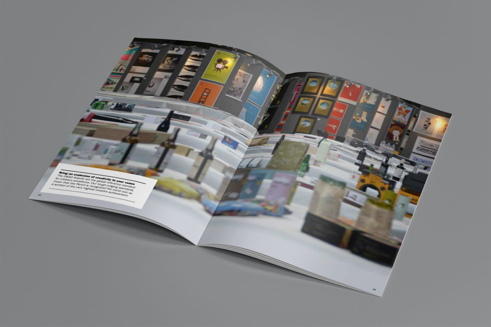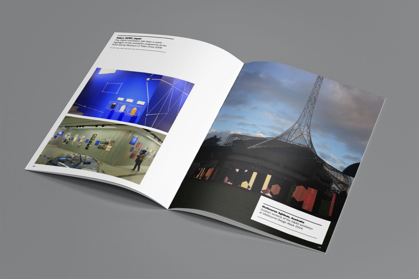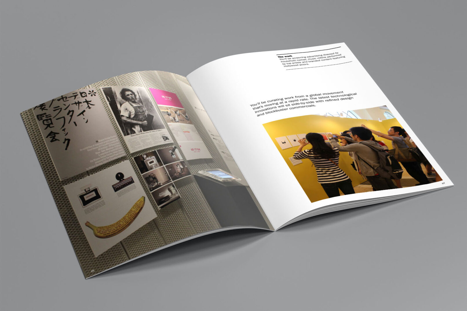 I was asked to design a brochure that would appeal to international arts institution heads and gallery space owners. Interested parties wouldn’t necessarily be familiar with the commercial creative industry so I felt it was important that it appeared uncontrived and made full use of photography to communicate the look, feel and content of these exhibitions. The final designs use a clean, gallery-inspired layout and typography and measured use of copy to create pace through the brochure.