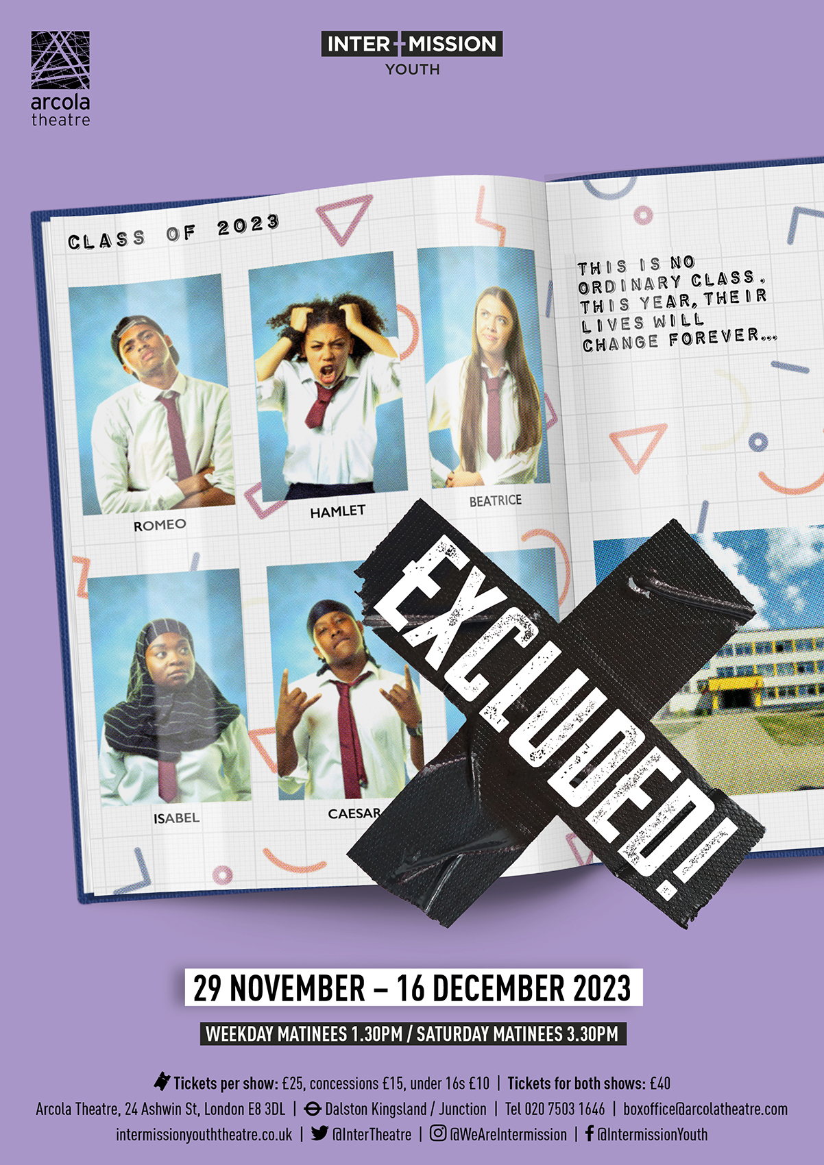 Excluded! is an original work by Darren Raymond using Shakespeare characters within a story around education. The play is set in a secondary school and looks at young people being shut out from many aspects in their lives: school, home and social circles.