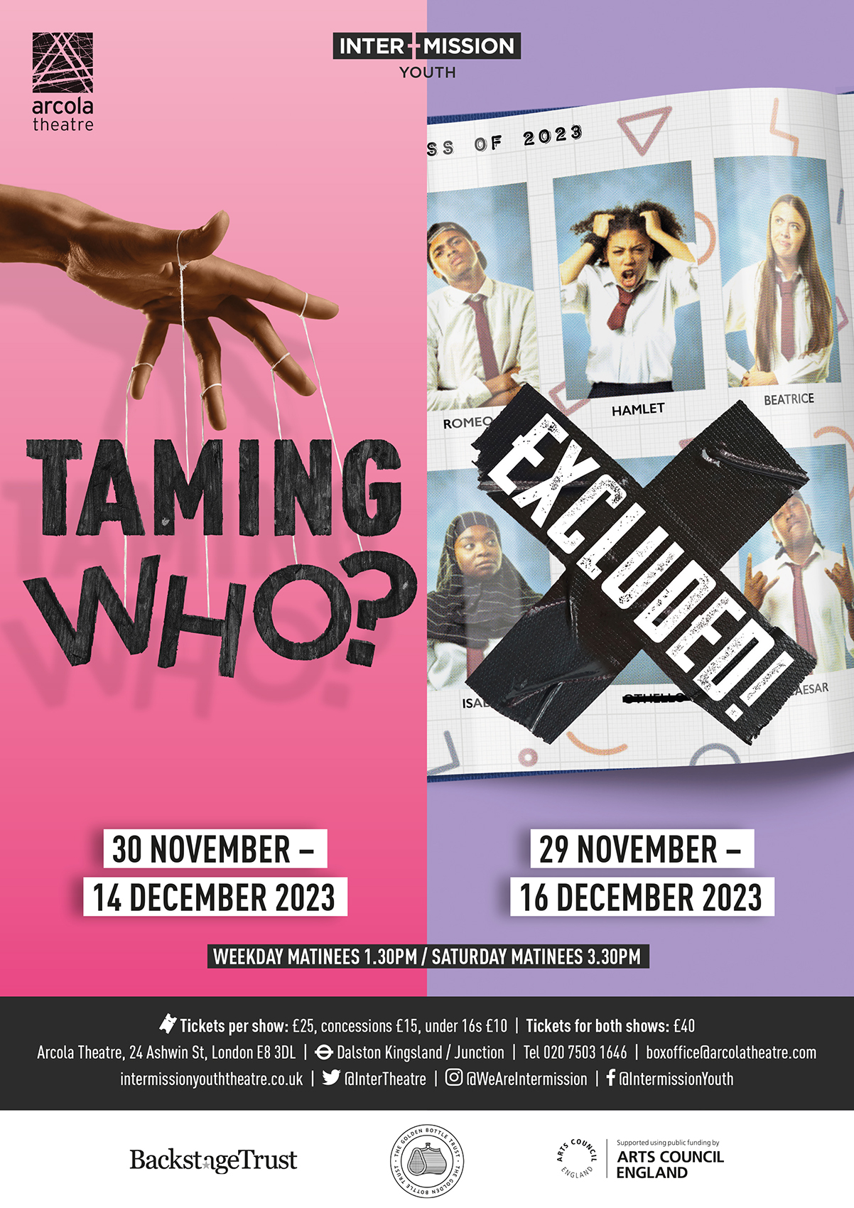 A joint campaign identity for Intermission’s productions of Excluded! and Taming Who?
