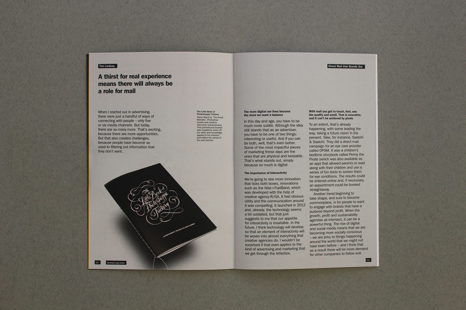 A b2b brochure commissioned by Royal Mail MarketReach in partnership with D&AD to promote the effectiveness of direct mail pieces in delivering brand messages to the public.