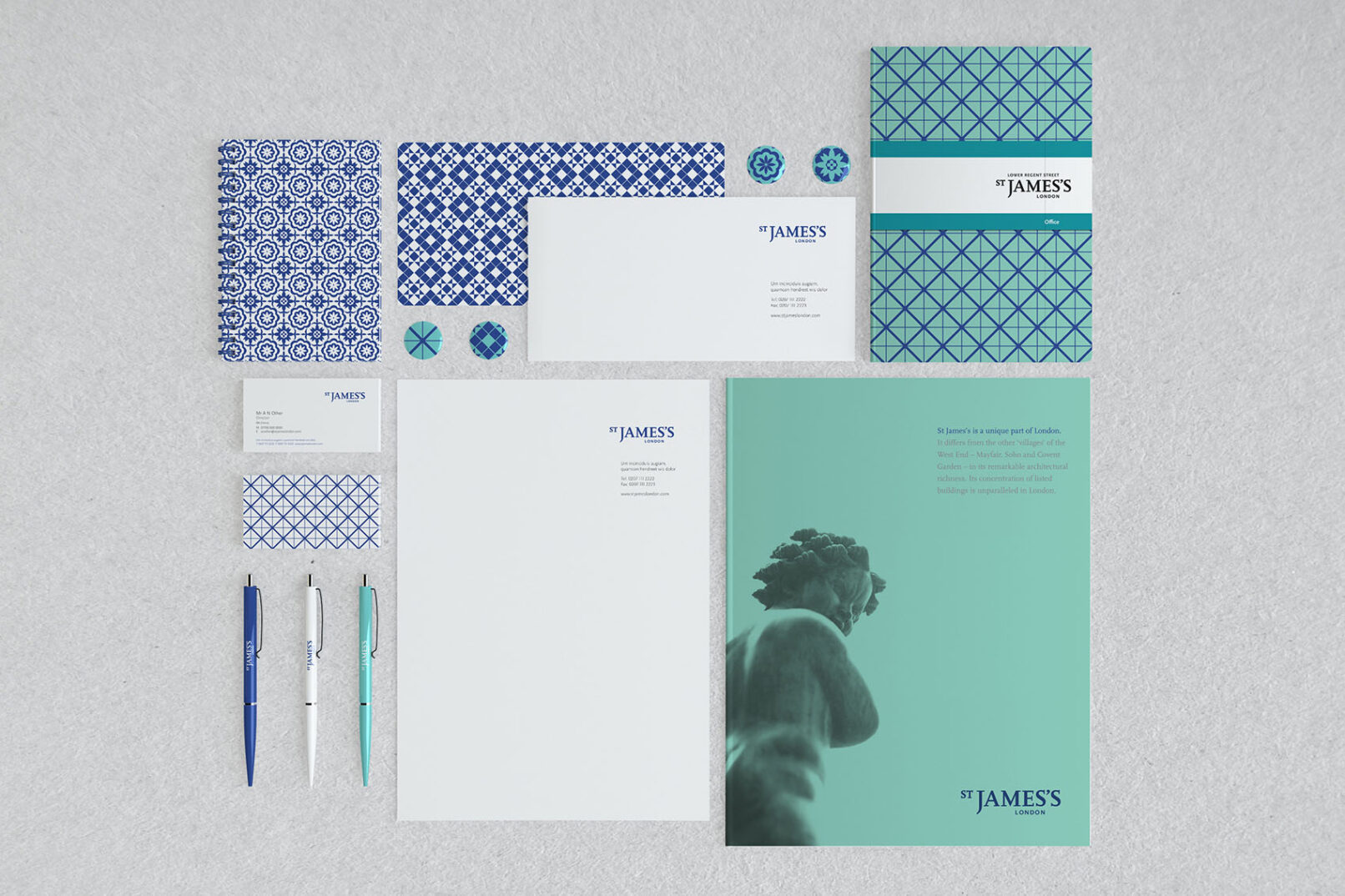 The challenge for their new brand was to represent the interests of all of these parties while remaining consistent, recognisable and unobtrusive. Taking some of the decorative tiling that can be found in the area as inspiration, the look and feel combined classic colours and textures with grid-based patterns and can be dressed up or down to represent the different characteristics and requirements of the St James’s community.
